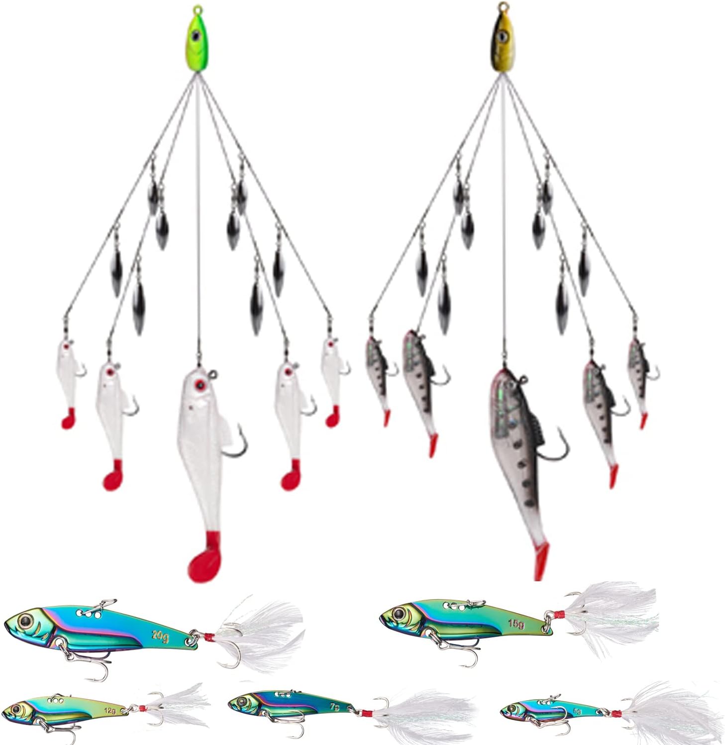 Umbrella Fishing Lure composed of wires, jigheads, swimbaits, and a host of terminal tackle, the umbrella rig accurately mimics a school of baitfish or. — learn how to use an umbrella rig to catch bass with multiple baits and blades. — learn how to fish with an umbrella rig, a setup that mimics a school of baitfish and attracts bass. — umbrella rigs can help you significantly by mimicking a small bait ball, ultimately piquing a fish’s curiosity and luring them to your lure. Find out the best setup, techniques, and tips for this controversial but. Find out how to choose the right rig, lures, and. composed of wires, jigheads, swimbaits, and a host of terminal tackle, the umbrella rig accurately mimics a school of baitfish or. — learn how to use umbrella rigs, fishing lures that mimic a school of baitfish, to catch bass, pike, striped bass, and. a lure that took the bass fishing world by storm after paul elias dominated the 2011 flw tour event on lake guntersville, the umbrella rig has become. shop alomejor umbrella fishing lure with 5 arms rig 18g rotating sequin alabama. — learn how the umbrella rig, or alabama rig, evolved from a banned lure to a specialized tool for catching bass in cold weather.